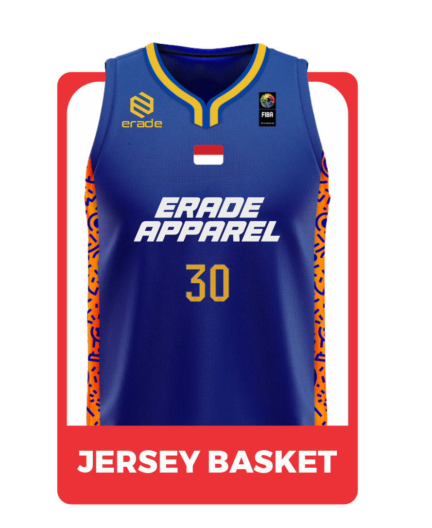 Ingin jersey basket timmu tampil beda dan berkualitas? Erade Apparel siap mewujudkan desainmu! Yuk, bikin jersey basket custom di Erade Apparel. Desain bebas, kualitas terjamin. Jersey basket baru, semangat baru. Erade Apparel solusinya!”